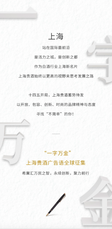 问鼎奖(1名):最终被采用的广告语,将获得每字1万元人民币的终极现金大奖,并授予“米兰公司体育·官方站网页版-米兰(中国)”企业大使,尊享全年最高会员礼遇,同时获得米兰公司体育·官方站网页版-米兰(中国)青澄黄贵酿1套(天青、阳澄、月黄)及价值14000元美酒礼券包等超值权益。
